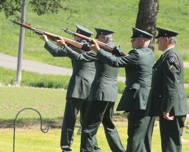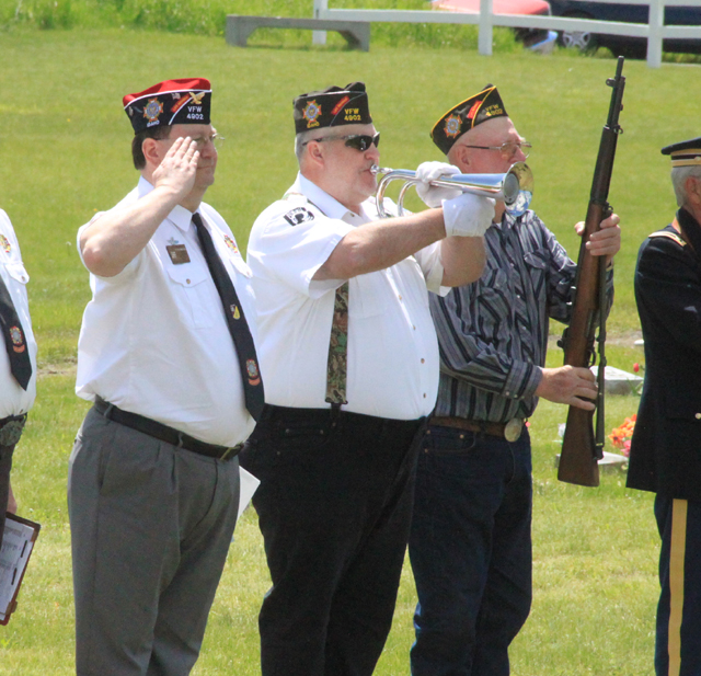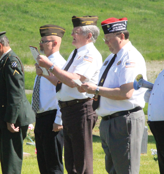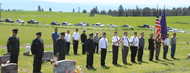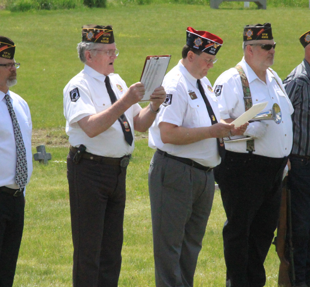 The lineup of the VFW and American Legion at Keuterville as Jim Steinke recites the prayer.