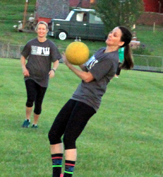 MaKayla Williams makes a great running catch in the outfield for the We Got the Runs team in their first game. |