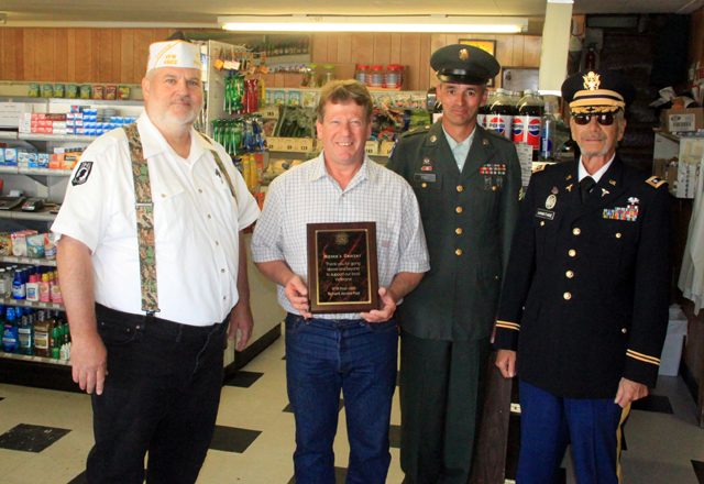 Frei and David Armitage present Gary Riener of Riener’s Grocery with aan