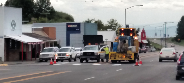 Cottonwood on Monday repainting the crosswalks along the Highway 95 Business