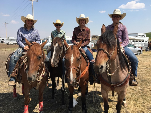 4 local kids of the 17 total competitors in "Youth Breakaway Roping.” From left are Molly Johnson, Cottonwood - Reed Aiken, Grangeville - Shada Edwards, Kooskia - Dani Aiken, Grangeville. Photo by Renee