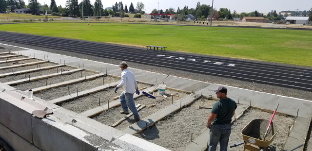 bleachers, when the footings going in. Caleb McWilliams, right, Spencer
