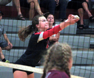 The Prairie Lady Pirates have 23 players turned out for volleyball this season. With only 4 players back from last year’s varsity squad it may be a bit of a struggle this year, especially early in the season. Seniors Jordyn Higgins, Theresa Wemhoff, Kristyna Krogh and Alexis Hiler are the returning players. Fellow senior Ellea Poxleitner, junior Ashton Landers and sophomores Hope Schwartz and Sierra McWilliams were JV players last year and sophomore Madison Shears sat out last season with an injury. Julie Wren Schumacher returns as head coach along with longtime assistant coach Marlene Forsmann. Troy and Genesee have to be the league favorites again this year with Prairie looking to be able to compete for a state berth by district time. Players on the JV and C teams this year are juniors Anna Kaschmitter, Brooklyn Riener and Syndee Bruegeman, sophomores Ellea Uhlenkott, Kelly Stubbers and Halle Klapprich and freshmen Olivia Klapprich, Ali Rehder, Katteri Duman, Josie Remacle, Trinity Martinez, Delaney Lockkett, Laney Forsmann and Mackenzie Key. Prairie competed at a Jamboree in Kamiah last Tuesday, August 21 where they won their 3 games against Kamiah, Summit and C.V. They opened their regular season this past Tuesday at home against Potlatch. Photos below are from the Jamboree at Kamiah Aug. 21.