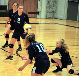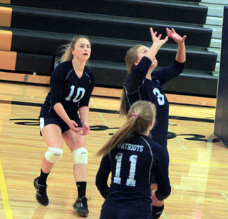 The Summit Academy Lady Patriots were able to field a volleyball team this year with 7 players turned out. They have 4 players returning from last year’s team which had the school’s highest ever finish at District at second place before losing a state play-in match to Council. They are seniors Taylor Lustig and Kayla Rehder and juniors Lexi Currier and Erin Chmelik. New to the team this year are 3 freshmen, Danielle Sonnen, Jade Prigge and Erin Wassmuth. The two freshmen they had last year have both transferred to other schools. Claira Osborne transferred to Genesee and Hailey Stubbers transferred to Prairie at the end of the first semester last year. Last year’s assistant coach, Jamie Johnson, has moved up to the head coaching position and Brooke Lustig is the new assistant coach. SUMMIT DROPS FIRST TWO MATCHES The Summit Lady Patriots got off to a tough start to their season as they lost league matches at Timberline and at Logos. They lost in 5 sets at Timberline Thursday, August 23, 28-26, 22-25, 25-22, 23-25, 9-15. On Saturday, August 25 they were swept by Logos at Moscow by scores of 16-25, 23-25, 17-25. A bright spot during the week was winning 2 of 3 games at the Kamiah Jamboree on Tuesday, August 21 as they routed C.V., edged Kamiah and lost a close match to Prairie.