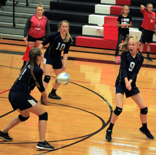 Kayla Rehder bumps the ball over as Lexi Currier watches after making the set. 2018 Summit Girls Volleyball Schedule Matches start at 6 p.m. unless indicated AUGUST 25-Logos, there, 1 p.m., lost 0 games to 3 30-Deary, there, lost 0 games to 3 6-Highland, there 11-Nezperce, there 13-Kendrick, there, 5:30 p.m. 18-Timberline, here 20-Logos, here 27-Deary, here 4-Nezperce, here 9-Kendrick, here |