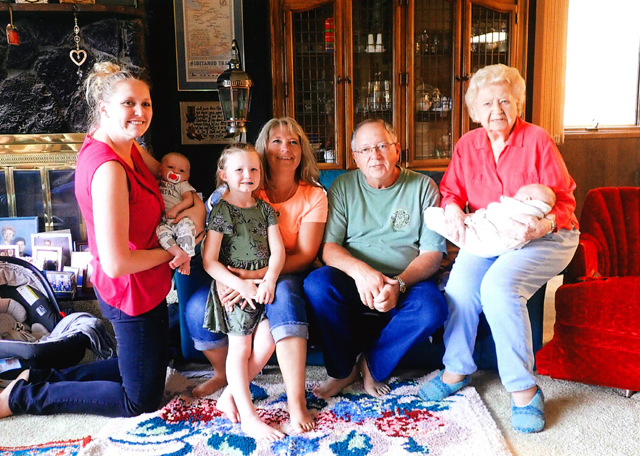 From left are great-granddaughter Holli Havens-Balmer, holding great-great