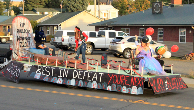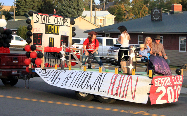 white screen at the front of the float was to have last year’s state football