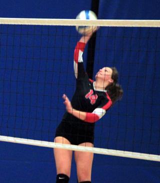 C.V. came back for a 5-6 lead before a net violation sent Hiler to the service line. She served 3 aces for a 9-6 lead. Prairie never gave back the lead although C.V. closed within 1 at 14-13. At 19-15, Landers served 2 aces to make it 21-15. After 5 straight sideouts Hiler scored a kill to get to game point and then scored another for the win. The second game started similar to the first as Prairie took a 5-1 lead only to see C.V. answer back with 5 straight points for a 5-6 lead. Wemhoff scored a kill to break an 8-8 tie and then served 2 aces for an 11-8 lead. Shears, Krogh and Higgins each served for 2 points while Prairie sided out 3 straight C.V. serves for a 20-11 lead. After another pair of sideouts, Hiler served out the game. She had 1 ace while Wemhoff added 2 kills and Poxleitner another. Krogh served Prairie to a 5-0 lead in the third game with 4 aces plus a kill by Hiler. C.V. got back within 3 at 8-5 but 2 aces by Landers made it 11-5. C.V. got back as close as 4 at 19-15 but a kill by Higgins ended that rally. Poxleitner added a kill for a 21-15 lead. After a trade of sideouts, Landers served 2 aces and then set up Krogh for the match winning kill. For the match Hiler had 13 kills, including a block, plus 4 aces. Higgins had 12 kills, 1 assist and 3 aces. Wemhoff had 7 kills and 2 aces. Poxleitner had 6 kills and 1 assist. Krogh had 3 kills, including a block plus 20 assist snad 9 aces. Schwartz had 1 kill and 4 assists. Landeres had 10 assists and 7 aces. Shears had 2 aces. The first game saw Prairie playing flat as they let Genesee score several easy kills. They also had trouble keeping their spikes in play as more than usual went into the net or landed out of bounds as they lost by 11 points. Genesee scored first in the second game then Prairie started to play with more purpose. A tip by Wemhoff gave Prairie their first lead of the match at 2-1 and 2 aces by Higgins and another tip by Wemhoff made it 5-1. After a sideout, Wemhoff scored another kill and Uhlenkott won a joust at the net, prompting a timeout by Genesee. After an ace by Hiler and another tip for a kill by Wemhoff Prairie had a 9-2 lead. After a sideout, Wemhoff scored another kill and Landers followed with an ace and Wemhoff added another kill prompting Genesee to use their second and final timeout. Wemhoff then added another kill to make it 13-3. That was Prairie’s biggest lead as Genesee cut into their lead but and got it down to 6 at 22-16 and again at 23-17. Wemhoff scored a kill to get to game point but Genesee didn’t go down easy. A net foul gave Genesee the serve and they cut the lead down to 24-21 before Landers set up Higgins for the game-winning kill. Prairie took that momentum in to the third game as they took a 7-1 lead behind 3 aces by Krogh and a block and a kill by Hiler plus a second touch tip by Krogh. Genesee then took the momentum back with a 1-9 run that saw them take an 8-10 lead. Prairie tied it on a missed Genesee serve at 12-12 and Wemhoff served 2 aces and Higgins added a kill for a 15-12 lead. Genesee answered with 6 straight to take their own 3 point lead.
