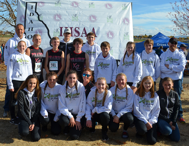 The girls team placed 6th and the boys were 10th at the State Cross Country meet held at Lewiston Saturday, Oct. 27. The top 20 finishers in each race received medals and the top 4 teams received trophies. Prairie came up short on both but it still was a successful season for the Pirates. Ciara Chaffee was Prairie’s top individual finisher with a 28th place in the girls race at 21:49.57. Tanner Hibbard was the top finisher for Prairie in the boys race with a 50th place finish in18:49.49. Other girls finishers were Kendra Duclos in 44th at 22:59.88, Kyleigh Duclos in 46th at 23:10.62; Jessie Sonnen in 52nd at 24:07.38; Maria Schmidt in 53rd at 24:15.11; Mattie Lustig in 56th at 24:31.95 and Hope McIntire in 67th at 25:24.63. Other boys finishers were James Villamor in 64th at 19:24.58; William Hooper in 79th in 20:47.90; Tyler Wemhoff in 81st at 21:04.39; Justin Lockett in 82nd at 21:38.40; Alex McElroy in 86th at 23:32.59 and Ryan Arnzen in 88th in 26:33.11. Devin Ross was unable to compete due to injury.
