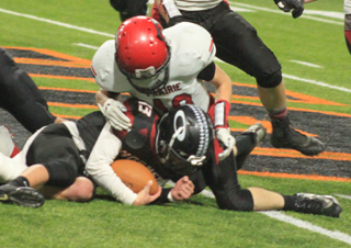 Prairie took over at the 50 after a 32 yard return by Schwartz and then moved the ball down to the 35 where things started misfiring. 20 yards worth of penalties had Prairie punting from their own 35. Oakley took over at their own 48 and moved to the Prairie 15 where they faced a fourth and 2. Dylan Schumacher tackled Bedke a yard shy of the first down and Prairie took over at the 14 on downs. On third and 7 Schumacher connected with Forsmann for a 26 yard gain but Forsmann fumbled at the end and Oakley recovered at the Prairie 47. The defense forced Oakley to punt and Prairie took over at their 20 after the punt went into the end zone. Schumacher was sacked for an 8 yard loss and then was intercepted at the 10. Oakley scored the go-ahead touchdown on the next play on a quarterback keeper by Jones. Prairie stopped the 2-point try and Oakley led 22-26 with 11:46 left in the game. Prairie took over at the 35 after 22 yard return by Shears. Schwartz then picked up 47 yards on a run to the right to put Prairie at the Oakley 18. That opportunity was thwarted by a holding penalty and then Schumacher was intercepted for the third time in the game. It was Prairie’s fifth turnover as Nyman intercepted at the 15 and returned it 13 yards. Prairie gave up a first down on a facemask penalty but then forced Oakley to punt and took over at their own 17. The Pirates picked up just 6 yards and had to punt with Shears shanking the punt as it went just 10 yards. Oakley looked to extend the lead as they converted a fourth and inches at the 14. A chop block penalty set them back and they wound up lining up to punt at the 39 after a delay of game penalty. You would have figured Oakley would try to coffin corner the punt and set Prairie back deep but instead ran a fake with Bedke being stopped at the 34 after just 5 yards on a fourth and 35. Prairie misfired on a fourth down pass but got the ball back with 2:10 to play when Bedke fumbled and Shears recovered at the Prairie 17. Prairie again misfired on a fourth down play and Oakley was then able to run out the clock. Yardage-wise Prairie outgained the Hornets 355 to 229. However the Pirates had 10 penalties to just 2 for Oakley and lost the turnover battle 5 to 2. Prairie had 99 yards rushing on 32 attempts led by Schwartz who had 72 yards on 13 carries. Schumacher was 16 for 38 passing for 256 yards with 3 interceptions. Forsmann caught 7 passes for 185 yards and 2 touchdowns. Shears had 5 catches for 61 yards and a touchdown. Anderson caught 3 passes for 16 yards. McWilliams led the defense with 11 tackles including a sack. Sam Mager had 9 tackles. Dylan Schumacher had 8.5 tackles. Schwartz and Anderson each had 7 tackles. Shears had 4.5 tackles, an interception and a fumble recovery. Dean Johnson had 4.5 tackles including a sack. Hayden Uhlenkott had 4 tackles and Garrett Bunce had a tackle. Prairie received a third place trophy at the end of the game as they ended their season with a 9-2 record. Prairie 0 22 0 0 -22 Oakley 8 12 0 6 -26 O-Bedke 10 interception return (Pulsipher pass from Jones) 2:29 1st O-Barnard 17 pass from Jones (run failed) 9:19 2nd P-Forsmann 15 pass from S. Schumacher (Schwartz pass from Schumacher) 7:02 2nd O-Nyman 55 kickoff return (run failed) 6:46 2nd P-Shears 24 pass from S. Schumacher (pass failed) 5:11 2nd P-Forsmann 33 pass from S. Schumacher (McWilliams run) 0:51 2nd O-Jones 10 run (run failed) 11:46 4th