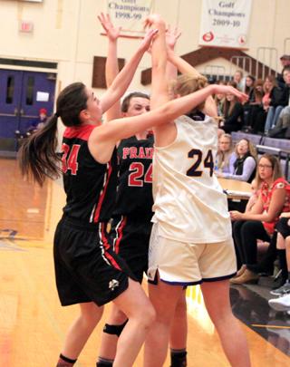 The Prairie Lady Pirates started the season with a couple of blowout road wins. On Thursday, Nov. 15 they won 71-16 over Clearwater Valley at Kooskia. They followed that up with a 64-24 win at Lewiston over the Lewiston JVs. Prairie jumped out to a 22-7 lead after one quarter and outscored the Rams 31-4 in the second quarter to take a 53-11 lead at the half. Coach Lori Mader said she had her team mostly just run offense in the second half looking more to run clock than score with their lead as big as it was. The fourth quarter was played under a running clock. Prairie had 3 players in double figures led by Jordyn Higgins with 17 points. Ciara Chaffee scored 11 and Theresa Wemhoff scored 10. Kristyna Krogh scored 9, Madison Shears 8, Ellea Uhlenkott 7 and India Peery and Alexis Hiler 4 each. Higgins added 8 steals and 4 assists while Wemhoff had 7 steals and Hiler had 5. Prairie actually outscored C.V. with just free throws as they were 17 for 30 at the line. Shears, Higgins and Krogh each had a 3-pointer in the game. The JV team had a much closer game as they won 20-19 in a 2-quarter game. Prairie 22 31 8 10 -71 C.V. 7 4 4 1 -16 Prairie-Hiler 0, 4-8, 4; Shears 3, 1-3, 8; Uhlenkott 2, 3-4, 7; Higgins 7, 2-3, 17; Wemhoff 3, 4-8, 10; Krogh 3, 3-3, 9; Peery 2, 0-0, 4; Chaffee 5, 1-2, 11. 3-pointers-Shears, Higgins, Krogh. C.V.-Miller 0, 0-0, 0; Herrick 0, 2-2, 2; Shorey 0, 0-0, 0; K. Mangun 1, 0-0, 2; Gianopulos 0, 0-2, 0; Smith 0, 0-0, 0; Schilling 1, 0-0, 2; Reuben 2, 1-6, 6; A. Mangun 1, 2-2, 4; Martin 0, 0-0, 0; Roy 0, 0-0, 0. 3-pointers-Reuben. Prairie scored first on a lay-up by Theresa Wemhoff of a feed from Jordyn Higgins. Lewiston quickly answered but that was 1 of only 3 shots the Bengals would be able to attempt in the quarter.