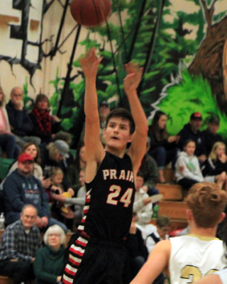 The Prairie Pirates led most of the way but were caught at the end by St. Maries and lost in overtime 50-53 on the winners’ home floor Saturday, Dec. 1. Prairie scored first in the game on a putback by Damian Forsmann and led 4-1 after a reverse lay-up by Derik Shears. St. Maries tied it with a 3-pointer but a free throw by Owen Anderson and a 3 by Forsmann gave Prairie an 8-4 lead. After a St. Maries basket, Devin Ross closed out the first quarter scoring with a basket at the buzzer for a 10-6 lead.