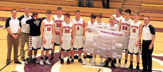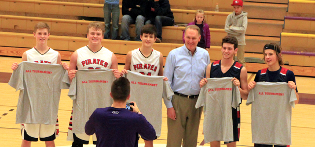 The Prairie Pirates finished the 2018 portion of their season by winning the championship of the Purple Bracket at the Truckstop.com Christmas Tournament held at the College of Idaho in Caldwell Dec. 20-22. They opened on Thursday with a 47-43 win over Nyssa, Oregon. They followed up with a 52-44 win over Marsing on Friday. On Saturday they beat Liberty Charter 35-27 in a rematch of last year’s consolation final at the state tournament. Vs. Nyssa Against Nyssa, Prairie took a 12-7 lead at the end of the first quarter but fell behind 21-22 at halftime. They still trailed by 1 point after 3 quarters at 33-34. They outscored Nyssa 14-9 in the fourth quarter to pull out the win. Spencer Schumacher had 22 points and 8 rebounds to lead the Pirates with Dylan Schumacher adding 9 points and 5 rebounds despite battling an illness. Prairie was also missing a couple of players due to a disciplinary issue but added a couple of JV players to the roster for the tournament. Devin Ross added 8 points with Cole Schlader scoring 6 and Derik Shears 2. Prairie 12 9 12 14 -47 Nyssa 7 15 12 9 -43 Prairie-Hibbard 0, 0-0, 0; Uhlenkott 0, 0-0, 0; Schlader 3, 0-2, 6; Mager 0, 0-1, 0; Anderson 0, 0-0, 0; Ross 4, 0-0, 8; S. Schumacher 7, 7-8, 22; Shears 1, 0-0, 2; D. Schumacher 4, 1-2, 9; Schwartz 0, 0-0, 0; Hasselstrom 0, 0-0, 0. 3-pointers-S. Schumacher. Nyssa-Jaquez 5, 2-2, 14; Pascacio 0, 0-0, 0; Gomeza 2, 0-0, 6; Pedraza 0, 0-0, 0; Chavez 4, 1-2, 9; Barba 2, 0-0, 5; Ortiz 2, 0-0, 4; Jensen 1, 0-0, 3; Elguezabel 1, 0-0, 2. 3-pointers-Jaquez 2, Gomeza 2, Barba, Jensen. Prairie led 11-5 after one quarter and 28-15 at the half. Marsing cut the deficit to 37-27 by the end of the third quarter but could gain just 2 points on the Pirates in the fourth. Spencer Schumacher again led the Pirates in scoring with 20 points and added 8 rebounds and 6 assists. Ross scoring 18 with 9 rebounds. Dylan Schumacher had 9 points and 5 assists. Schlader scored 3 and Shears scored 2. Ross had 3 triples in the game while Spencer Schumacher scored a pair of 3-pointers. Prairie 11 17 9 15 -52 Marsing 5 10 12 17 -44 Prairie-Hibbard 0, 0-0, 0; Uhlenkott 0, 0-0, 0; Schlader 1, 1-2, 3; Mager 0, 0-0, 0; Anderson 0, 0-0, 0; Ross 6, 3-6, 18; S. Schumacher 8, 2-3, 20; Shears 0, 2-4, 2; Hasselstrom 0, 0-0, 0; Schwartz 0, 0-0, 0; D. Schumacher 4, 1-2, 9. 3-pointers-Ross 3, S. Schumacher 2. Marsing-E. Quebrado 5, 7-8, 21; Milburn 1, 0-0, 3; Shippy 0, 0-0, 0; N. Quebrado 0, 0-0, 0; Oliveros 0, 0-0, 0; Enrico 0, 0-0, 0; Valadez 2, 0-0, 5; C. Sevy 4, 0-0, 8; D. Sevy 1, 0-0, 2; Ankeny 2, 1-1, 5. 3-pointers-E. Quebrado 4, Milburn, Valadez.
