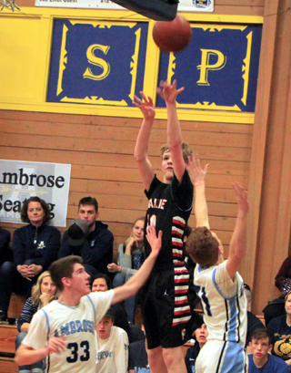 Ambrose took a 9-10 lead on a 3-pointer but Prairie answered with a reverse lay-up by Dylan Schumacher that gave Prairie an 11-10 lead at the end of the first period. Ambrose again took the lead to open the second quarter but Prairie answered with a basket each by Dylan Schumacher and Mager to take the lead for good. Although Prairie never trailed again, they couldn’t really shake free of Ambrose in the first half. A 3-point play by Mager gave them a 4-point lead at 20-16 but Ambrose answered with a 3 from about 25 feet out. Schlader answered that with a 3 but Ambrose came back with 2 free throws to pull back within 2. Prairie outscored the Archers 5-2 to end the half and take a 28-23 lead. Schlader had a free throw and Spencer Schumacher scored 2 baskets. Dylan Schumacher opened the second half scoring with a 3-pointer for a 7-point lead. Ambrose answered with a basket but a 7-0 run by the Pirates finally opened some breathing room. Spencer Schumacher had a 3-point play then Forsmann scored after a steal. Spencer scored again to make it 38-25. Ambrose scored but Ross answered with a 3 and a reverse lay-up to give the Pirates a 16-point lead at 43-27. Ambrose scored the final 3 points of the quarter to make it 43-30. In the fourth quarter Prairie was able to work their offense and get high percentage shots, hitting 6 of 7 attempts in the quarter, to hold off the Archers. Ambrose never got closer than 11 points at 47-36. Spencer Schumacher wound up with 19 points to lead the scoring and made his last 7 shots from the field. Dylan Schumacher scored 9, Schlader 8, Ross and Forsmann 7 each and Mager 5. Prairie dominated the boards 33-21 with Ross pulling down 12 rebounds. Dylan Schumacher had 4 steals and 9 assists. Ross added 4 assits as Prairie had 19 assists as a team on 24 made baskets. Prairie was 24 for 42 from the field, 57%, and 3 for 6 at the line, 50%. Ambrose was 17 for 46 from the field, 37%, and 6 for 10 at the line, 60%. Prairie is now 12-5 on the season and 8-2 in league play. Prairie won the JV game 61-48. Prairie took a 19-11 lead in the first quarter as Hasselstrom scored 6 and Uhlenkott and Rambo added 4 points each. Ambrose came back to make it 19-15 by the end of the quarter and scored the first 4 points of the second quarter to tie the game at 19. Schwartz scored a basket to put Prairie back on top and Schumacher added 2 free throws. Ambrose came back to tie it at 25. Schwartz put Prairie back on top with a free throw and Wemhoff rebounded the missed second shot and scored to make it 28-25. Ambrose was able to rally back and tie it at 30 at the half on a putback at the buzzer. Ambrose scored to open the second half but Hasselstrom answered with a 3-pointer and Rambo followed with a free throw for a 34-32 lead. Ambrose tied it again at 34 but a basket by Rambo kicked off a 9-0 run by Prairie that put the Pirates on top for good. Hasselstrom and Johnson added baskets to make it 40-34 after 3 quarters and Schumacher opened the fourth with a 3 to make it 43-34. Prairie converted 9 of 10 at the line and hit 5 of 10 from the field in the final quarter to pull away for a 13-point win. Hasselstrom again led the scoring with 19 points. Wemhoff was also in double figures with 10 points. Rambo scored 9 while Johnson and Schumacher added 8 points each. Schwartz scored 5 and Uhlenkott 4. Prairie outrebounded Ambrose 30-22. Schwartz, Wemhoff and Schumacher each had 5 to lead the Pirates. Wemhoff had 5 steals and Hasselstrom had 4 assists. Prairie was 21 for 41 from the field, 51%, and 16 for 24 at the line, 67%. Ambrose was 21 for 47 from the field, 45%, and 2 for 9 at the line, 22%. Prairie 11 17 15 12 -55 Ambrose 10 13 7 11 -41 Prairie-D. Schumacher 4-7, 0-0, 9; Mager 2-2, 1-1, 5; Forsmann 3-6, 0-0, 7; Ross 3-5, 0-0, 7; S. Schumacher 9-14, 1-3, 19; Schlader 3-7, 1-2, 8; Anderson 0-1, 0-0, 0; Shears 0-0, 0-0, 0. 3-pointers-D. Schumacher, Forsmann, Ross, Schlader. Ambrose-Sugarman 4-8, 0-0, 11; Blythe 5-12, 6-10, 16; Hughes 0-7, 0-0, 0; Yenor 2-9, 0-0, 4; Hansell 1-1, 0-0, 2; Johnson 2-3, 0-0, 4; Boeck 2-5, 0-0, 4; Ferrer 0-0, 0-0, 0. 3-pointers-Sugarman 3.
