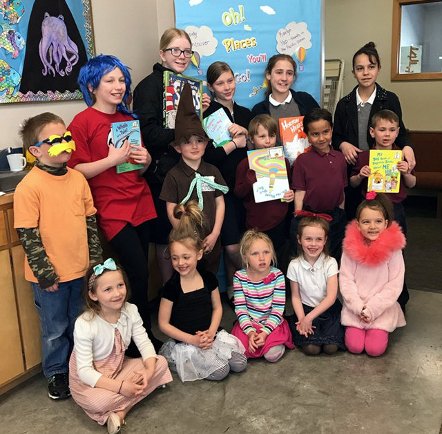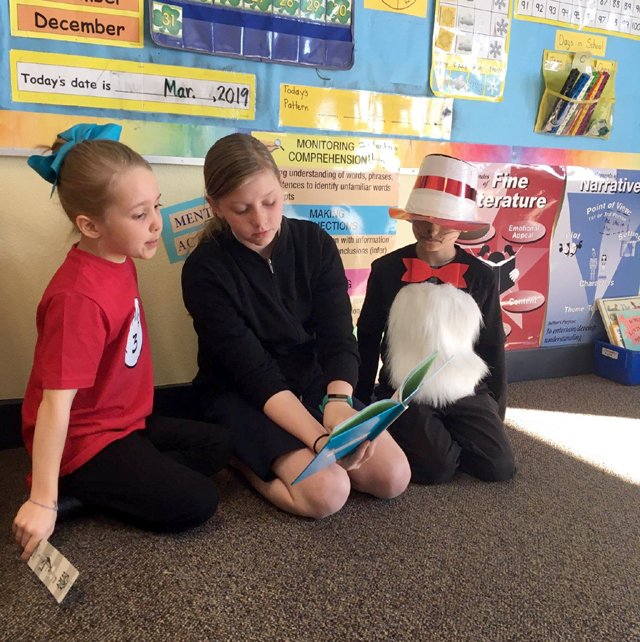 In the photo Julia Wassmuth reads a favorite Dr. Seuss book to Maddie Stubbers