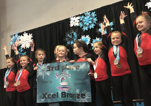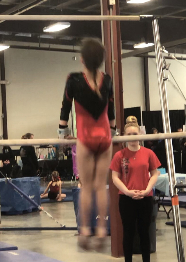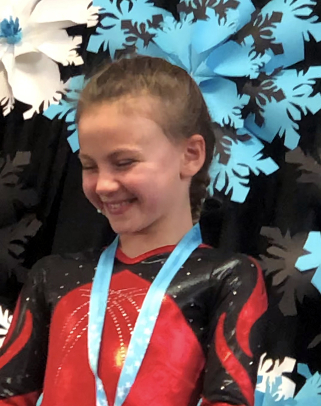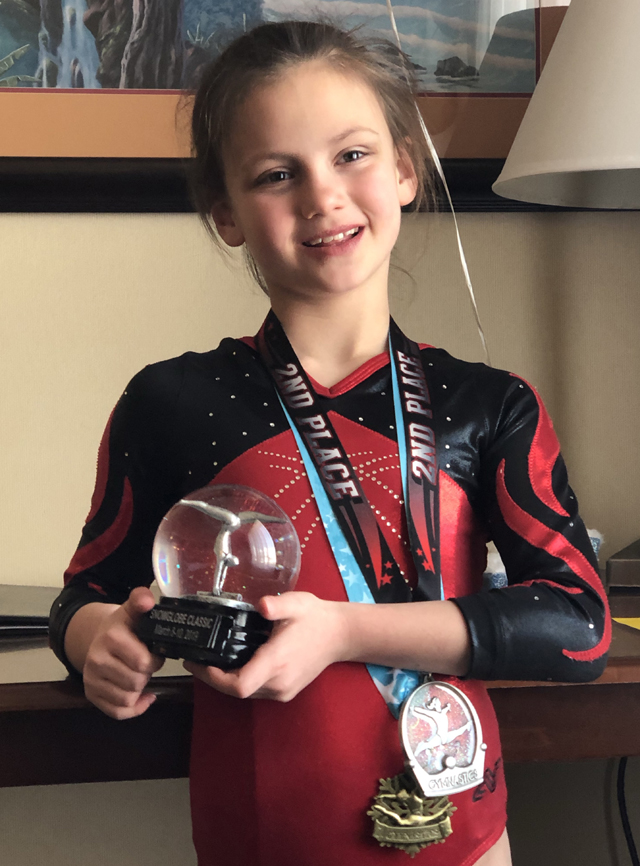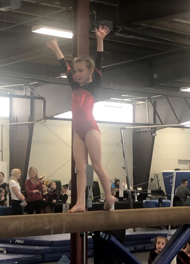 Marji Remacle competed at the 8:00 am session with her Bronze Team in the Snow Globe Classic 2019. This event took place in Hayden, ID. Eleven athletes were in Marji’s division and 1/10 of a point can move a competitor from first to fifth place. Marji competed on Vault and tied for fourth place on that event with a 9.05, bars (9.5) and beam (9.05) placed her fifth in both events. Floor, on the other hand, was quite a surprise. She placed first (9.2) and also added the round off back handspring to the routine. This is the first time that she scored in the nines with her back handspring in the routine. The score on Floor, when added to her high scores throughout the competition, placed her nicely in the Second All Around position. Marji’s 360 Bronze Team Placed Third as well. The next, and final, competition of 2019 will be the State Competition in Moses Lake, WA, in two weeks. If you see her, wish her well because this contest is heating up to quite a pinnacle.