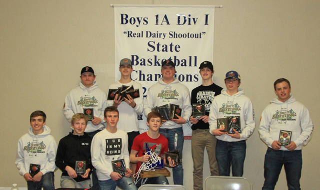 also holding the State Championship trophy. Back from left are Dean Johnson,