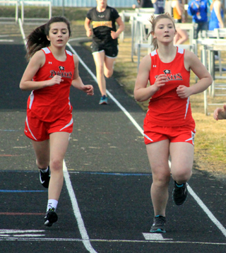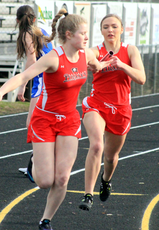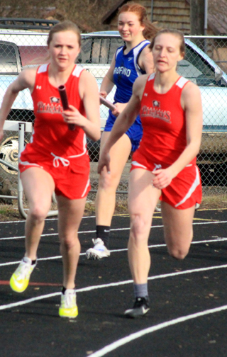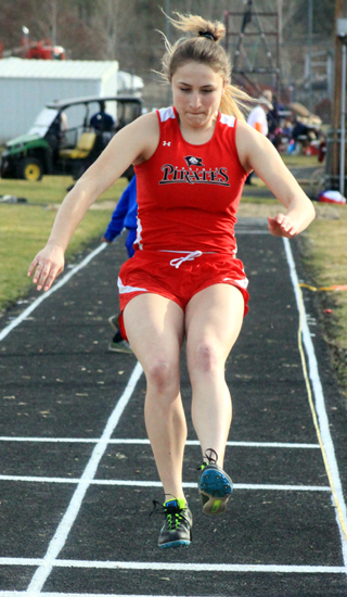 Martin, a sophomore, won the long jump with a mark of 1810. He was also 2nd in the 200 in 24.95 and 3rd in the 100 in 12.19. Carson Schmidt, a senior, won the shot put with a mark of 402 and was 2nd in the discus at 1233. The girls 4x200 meter relay team of Ellea Uhlenkott, Jordyn Higgins, Sierra McWilliams and Theresa Wemhoff won with a time of 1:54.71. The same four girls teamed up to win the 4x400 meter relay in 4:33.93. Other boys results: Hayden Uhlenkott was 4th in the discus at 1101 and 12th in the shot put at 335. Jesse Cronan was 4th in the long jump at 162, 15th in the woo in 27.75 and 15th in the discus at 820. Reid Uptmor was 6th in the 400 in 1:02.24, 10th in the discus at 981 and 13th in the shot put at 3111¾. John Gehring was 6th in the high jump at 410 and 13th in the discus at 847. Brody Hasselstrom was 7th in the 200 in 26.69, 13th in the 100 in 13.15 and 11th in the discus at 928. Matt Coppernoll was 7th in the discus at 1038 and 9th in the shot put at 343. Zach Rambo was 8th in the 400 in 1:07.28 and 11th in the 1600 in 5:44.28. James Villamor was 10th in the 1600 in 5:43.60. Zac Arnzen placed 10th in the 400 in 1:08.07 and 19th in the 200 in 29.29. William Hooper was 11th in the 800 in 2:37.62. Tyler Wemhoff was 12th in the 400 in 1:09.20 and 20th in the 1600 in 6:17.30. Justin Lockett was 14th in the 800 in 2:43.23 and 22nd in the 1600 in 6:21.06. The boys 4x100 relay team of Zac Arnzen, Cronan, Hasselstrom and Martin placed 3rd in 49.26. Boys 3200 results were unavailable. Villamor and Wemhoff both competed in the event. Other girls results: Ciara Chaffee placed 2nd in the 1600 in 6:24.56 and 2nd in the 3200 in 13:57.01. Ellea Uhlenkott was 3rd in the 300 hurdles in 55.44. Erin Chmelik was 4th in the 100 in 14.47, 5th in the 200 in 30.29, 9th in the 100 hurdles in 21.58 and 5th in the long jump at 137½. Hailey Stubbers was 4th in the 400 in 1:15.32, 7th in the 100 in 15.02 and 10th in the 200 in 32.21. Theresa Wemhoff was 5th in the 100 in 14.48. Kolleen Hasselstrom was 6th in the shot put at 2710½ and 9th in the discus at 808. Emma Gehring was 7th in the discus at 8310 and 9th in the shot at 269½. Jordyn Higgins was 8th in the 100 in 15.02. Ali Rehder was 8th in the 800 in 3:08.94. Halle Klapprich was 8th in the 1600 in 8:22.18, 9th in the 800 in 3:12.33 and 16th in the 200 in 33.8. CiCi Chavez was 11th in the 100 in 15.19 and 17th in the 200 in 34.46. Jade Gehring was 15th in the shot at 15½ and 19th in the discus at 4810. Uhlenkott, Higgins, McWilliams and Wemhoff placed 3rd in the 4x100 relay in 54.92. McWilliams, Stubbers, Chaffee and Chavez placed 3rd in the medley relay in 2:12.44. Each team placed fourth in the team standings. The boys with 79 pts. and the girls with 86 pts.