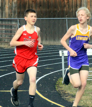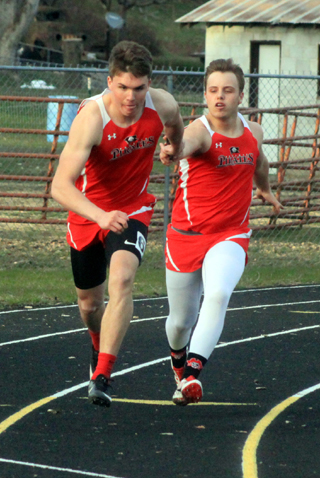 T.J. Hibbard, Cole Martin and two girls relays won events at a 9-school track meet held at Kamiah Thursday, March 21. Hibbard, a freshman, won the 800 meter run in 2:17.77. He was also 9th in the 200 meter dash in 26.88, 14th in the discu s