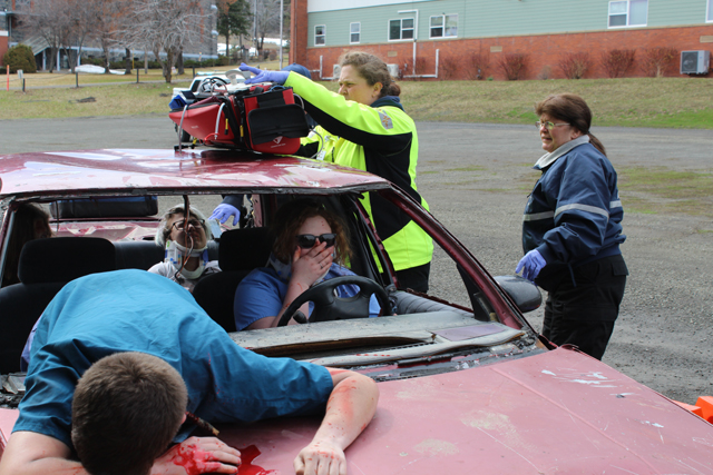 Justin Jones, a senior at Prairie High School, had a simulated car accident staged as his senior project. He got the idea from helping with a mass casualty drill. |