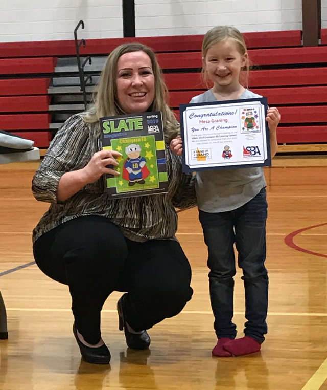 Mesa Graning with a 1st place award for winning the Champion Ed coloring
