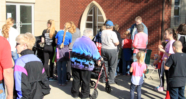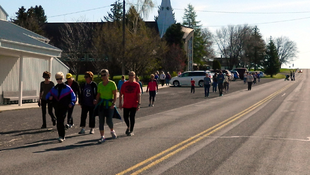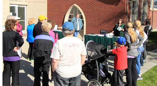 Walkers head out from St. Anthony’s Church during the Greencreek Healthwalk. Photo by Arlene Baerlocher.