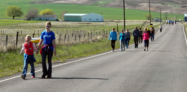 Greencreek walkers make their way up Westhoff Road. Photo by Arlene Baerlocher. |