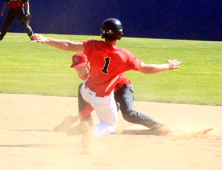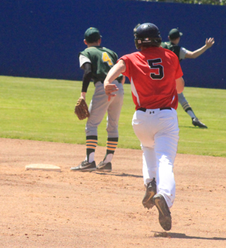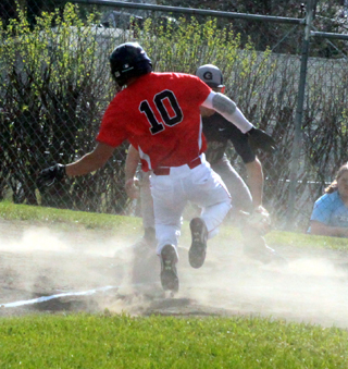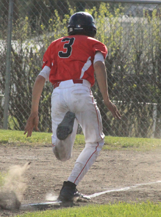 Tate Berdoy heads for second with a leadoff double against Potlatch.