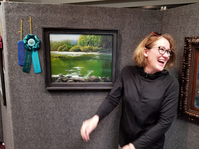 The PEOPLES CHOICE and 1st place award in oil awarded to Carrie Jo Rehfeld for "Snoqualmie River,"