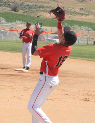 The Prairie baseball team struggled with their hitting and wound up winning just 1 of 3 games at the State Tournament Friday and Saturday, May 17-18 at Glenns Ferry. In the opener they took the lead, gave it back then rallied in the bottom of the 7th for a 5-4 win over Clearwater Valley, their third win over the Rams in 4 games this season. Later on Friday they lost 1-3 to Glenns Ferry. On Saturday in the 3rd place game they lost to Horseshoe Bend 5-12. That left them with a 4th place finish. Sam Mager opened on the mound and gave up a leadoff single but then got out of the inning. In the bottom of the first Tate Berdoy reached on an error but was forced out by Chase Kaschmitter. Kaschmitter wound up advancing to second on another C.V. error as they tried to complete a double play. Kaschmitter advanced to third on a wild pitch. After a walk by Mager, Spencer Schumacher hit a deep fly to right that scored Kaschmitter. Prairie had a run without benefit of a hit. C.V. tied it in the second inning when Mager hit the leadoff batter, who stole second and went to third on a passed ball. Mager struck out the next two batter but a single scored the tying run. Dalton Ross drew a 2-out walk in the bottom of the second and went to second and then third on errant pickoff attempts but was stranded at third as the inning ended. Berdoy took over on the mound in the third and set C.V. down in order. After 2 quick outs for Prairie, Mager reached when the left fielder dropped a fly ball. Schumacher was walked on 4 pitches but the inning ended with the next hitter. C.V. took the lead in the fourth on a 1 out error, followed by a hit batsman with the run scoring on a groundout. Priarie came right back with 2 runs to retake the lead in the bottom of the fourth. Ross singled down the left field line with 2 outs, Prairie’s first hit of the game, and Michael Schwartz followed with a single to right. Ross advanced to third and Schwartz made it to second on the throw to third. Ross scored on a wild pitch and Berdoy drew a walk. Kaschmitter looped a single to left to score Schwartz and give Prairie the lead. Neither side scored in the next 2 innings. In the top of the seventh Berdoy hit the leadoff batter but he was forced out at second. After a stolen base, a single scored the tying run with the batter advancing to second on the throw to the plate. A passed ball moved the runner to third and another single scored the go-ahead run for the Rams. After a walk, coach Kyle Westhoff had Schumacher come in from right field to take over on the mound. Schumacher got the next two hitters out to keep it a 1-run game. Schumacher then led off the bottom of the seventh and drew his third walk of the game. Owen Anderson hit what could’ve been a double play ball to short that went right through the wickets into left field. Dean Johnson was hit by a pitch to load the bases. Connor Schwartz drew a walk to force home Schumacher with the tying run. Ross hit to short and Anderson was forced out at home. With Michael Schwartz at the plate, Westhoff had Johnson at third take off with the pitch, Schwartz made contact and Johnson was able to score the winning run. Prairie had just 4 hits in the game, 2 singles by Michael Schwartz and a single each by Ross and Kaschmitter. Mager gave up 1 run on 2 hits with no walks, 1 hit batsman and 4 strikeouts in 2 innings. Berdoy gave up 3 runs on 2 hits with 4 walks, 2 hit batsman and 2 strikeouts in 4 1/3 innings. Schumacher picked up with win by getting outs from both batters he faced. C.V. 0 1 0 1 0 0 2—4 4 6 Prairie 1 0 0 2 0 0 2—5 4 2