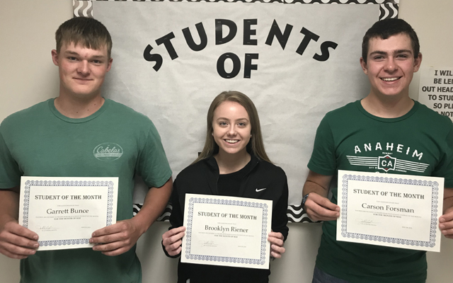 are from left: Garrett Bunce, Brooklyn Riener and Carson Forsman. Bunce
