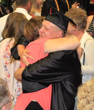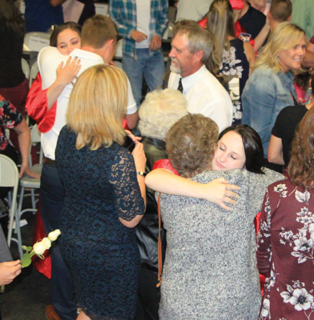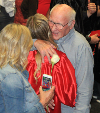 A senior, we think it’s Jordyn Higgins, gets a hug
