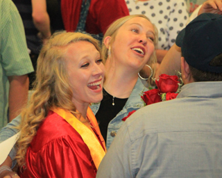 Alexis Hiler and Madison Hinkelman both receive hugs
