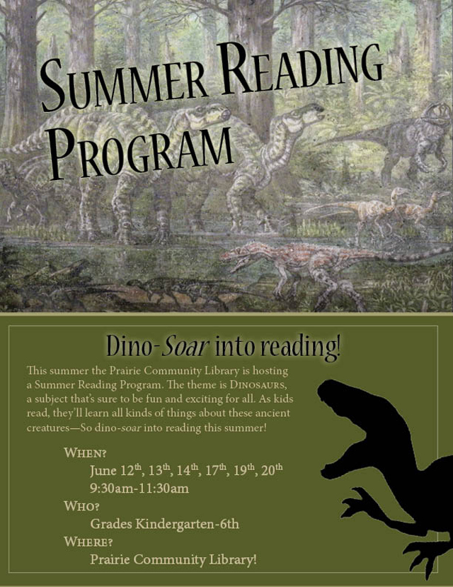 9:30am - 11:30am at the Prairie Community Library. Children Kindergarten