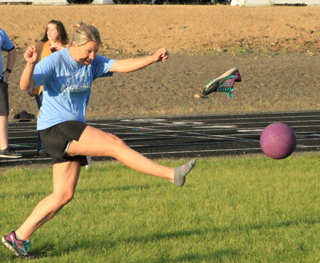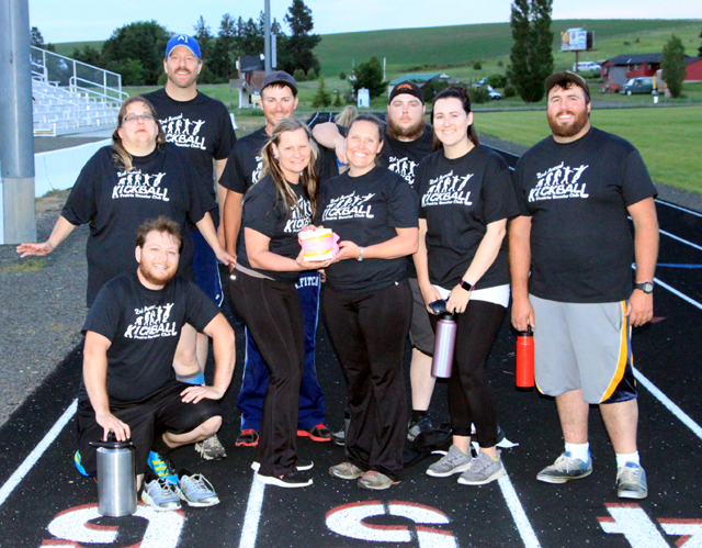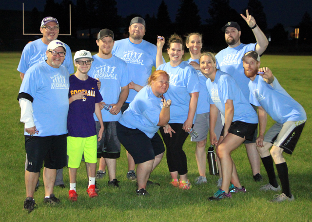 The Toe Kicks were the Kickball champions in the 2nd annual tournament sponsored by the Prairie Booster Club last Thursday, June 13 at the Prairie football/track facility. They went through the tournament unbeaten although it took a rock-paper-scissors tiebreaker to get past their opening round opponent. They featured mostly Pacific Cabinets employees.