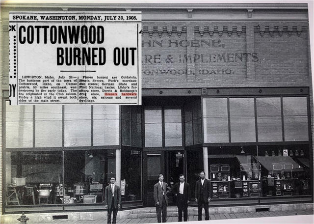 fire was in July of 1908 after he opened the original store April 1, 1908.