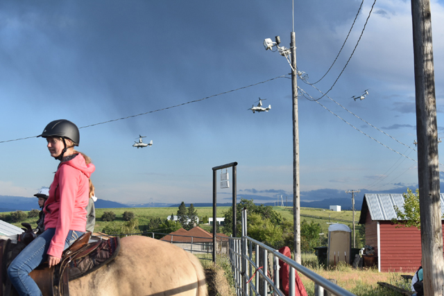 week for 3 military Ospreys to practice touch and go takeoffs and landings