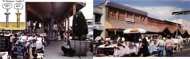 1981 during the Buggy Whip Festival when Don Hoene owned the store. Also shows the newly built awnings on Main Street businesses giving the town an old west feel.