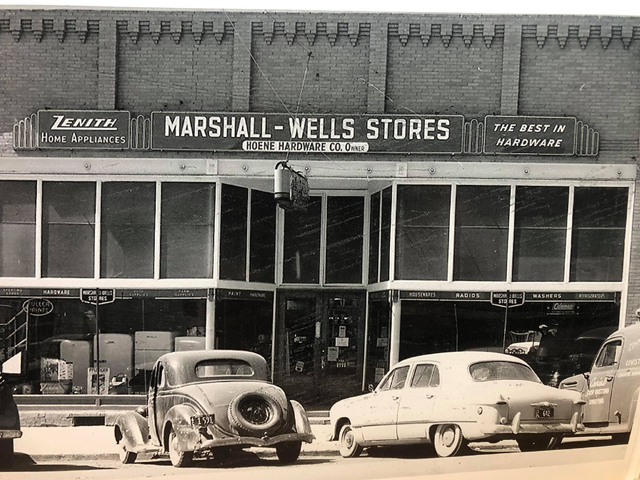 A picture from the time when Grandpa Gus Hoene owned the store. This is 1945. Gus partnered with John W Seubert in the store. While he owned it, they built the loft upstairs where we displayed appliances and bedroom sets in later years. He affiliated with Marshall - Wells during these years. Don Hoene took them independent again in the 60s when he bought the business. In the 80s they still had boxes of Marshall - Wells branded Christmas decorations. You'll notice we sold Zenith - I think we had televisions. It was not unheard of for a Jenny or Seubert or Kopcynski to stop by after work and share a bottle with Grandpa in the back room. He was incredibly involved in the community and ran a good business, everyone seemed to like Gus Hoene.