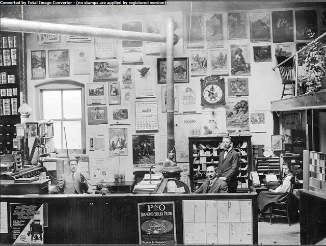 The old office in the back southeast corner of the store. The picture wasn't dated but, from the calendar on the wall seems to show this is from October of 1913. We see Frank Kelsey at the first desk, John Hoene in the middle, Not sure who is behind him and it may be Molly Jenny at the bookkeepers desk. The Gem clock is still there. It seems they were mostly made in 1910 and given away to stores that sold their products. Jane Hoene used to wind it every morning and according to her son Gus, it hasn’t been wound since the last time she did it. Notice the window in the north wall before the City Electric building next door was built. The holes from the stovepipe are still upstairs at the store covered with plates.