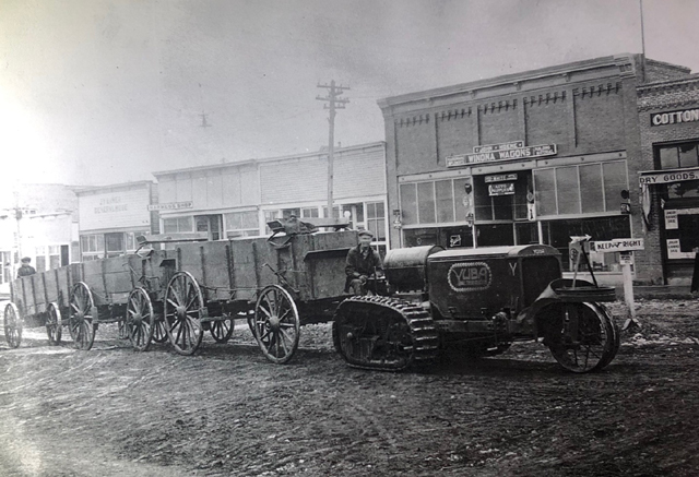 Joe Uhlenkott's Yuba tractor driven by Joe Junior 1918. It looks like he is pulling some of those Winona Wagons from the Hoene Hardware - not sure though. Color pictures of this tractor which recently sold at auction for over $90,000 are at this link. https://www.mecum.com/lots/GN1117-309122/yuba-ball-tread-20-35-tractor/