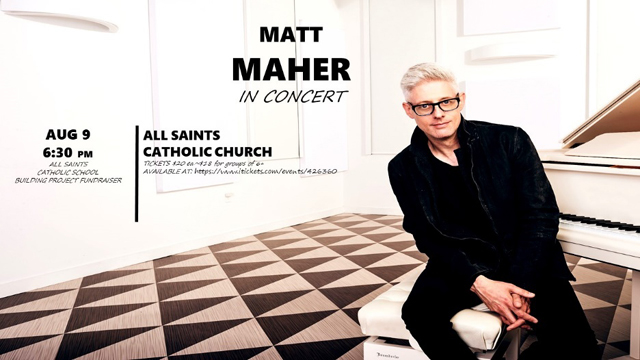 National recording artist Matt Maher will be holding a concert Friday, August 9 at 6:30 p.m. at All Saints Catholic Church in Lewiston. Proceeds will go to the All Saints Catholic School building project. |