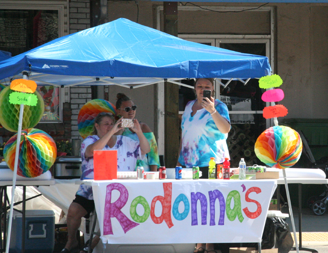 Those working Rodonna's booth take pictures of the Parade as it goes by.