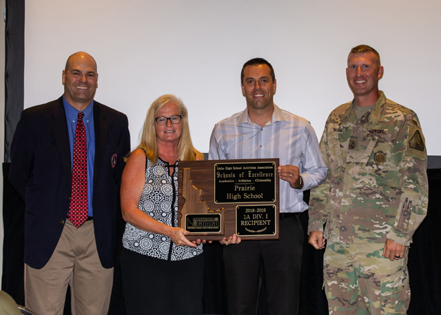 along with Ty Jones of the IHSAA, left, and SFC Matt Wilson of the Idaho
