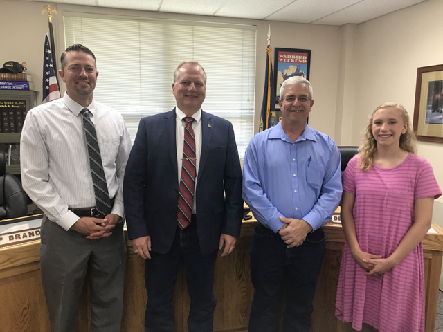 Rowland with the Idaho County Commissioners. From left are Mark Frei, Skipper Brandt, Denis Duman and Rowland.