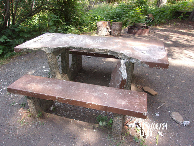 Someone recently busted up a concrete picnic table to O’Hara Campground. The Forest Service is seeking any information related to the above pictured vandalism. |