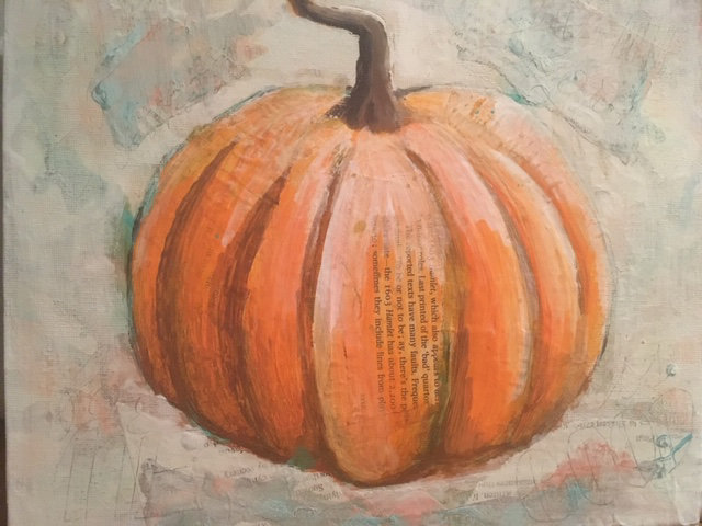 The collage project at St. Gertrude’s will include a multilayered painting which explores the unique beauty of wash techniques. We will work with a fall theme; and participants who are comfortable with lettering may add this element as well. |
