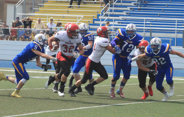 In what many saw as a surprising result, the Prairie football team thoroughly dominated the Raft River Trojans, 56-12, in their season opener at Middleton High School Saturday, Sept. 7. Raft River had already played a game, shutting out Idaho City 36-0.