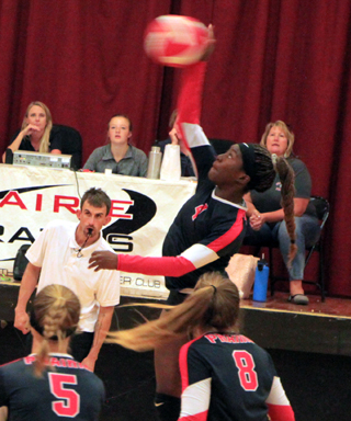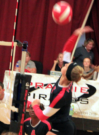 C.V. came back through and took the lead at 9-10 and again at 10-11 and then held the lead until prairie tied it at 19-19 on a kill by Madison Shears. Prairie took a brief lead at 22-21 on an ace by Erin Chmelik but C.V. then won a joust at the net and scored the next 3 points to win the game. C.V. then jumped out to a 0-4 lead in the second game. Prairie got back within 4-5 on an ace by Uhlenkott but couldn’t tie it, much less take the lead. C.V. led by as many as 5 at 11-16. A couple of aces by Shears cut the lead to 14-16 and after trading sideouts Chmelik went to the service line. Chmelik has a strong serve but doesn’t always get it to land in play. This time though she was on a roll and served Prairie into a 23-17 lead. She had 5 aces while Hope Schwartz scored a pair of kills and Trinity Martinez added another. Chmelik’s last ace ticked the net and dropped over and her next serve unfortunately was lower yet, ending her run. C.V. cut the lead to 23-19 before Martinez scored on a tip. With McWilliams serving, Brooklyn Riener scored the game-winning kill to even the match at 1 game each. C.V. led early in the third game but Reiener served Prairie into the lead with 2 aces plus a kill by Uhlenkott that made it 5-3. Prairie held the lead until C.V. tied it at 10 and again at 11 before taking an 11-12 lead. A bricked serve tied it at 12 and Landers served an ace to put Prairie back on top. Two aces by Riener gave Prairie a 17-13 lead but C.V. rallied back to tie it at 17 before missing a serve. Uhlenkott served 3 aces and then added a kill when her dig of a C.V. spike found open floor on the C.V. side. That put Prairie up 22-17. C.V. got within 22-19 before Chmelik scored a kill to the back line. A C.V. sideout was answered by a back row kill by Anna Kaschmitter. Chmelik then served as ace for the game winner and a 2 games to 1 lead. C.V. answered back in game 4 by jumping out to a quick 0-4 lead. Prairie was able to get back within 1 at 12-13 but couldn’t quite tie it. C.V. then got a 5 point service run that created some separation and Prairie was unable to rally as they lost by 8. After falling behind 0-3 in the decisive 5th game, Reiner served Prairie to a 5-3 lead with 2 aces and a kill each by Uhlenkott and Chmelik. C.V. took the lead for good at 7-8 and built the lead to 7-13 before Prairie could score again. Chmelik tried to duplicate her game 2 serving magic and scored 1 ace and Martinez scored on a block to get within 10-13 before a violation led to a side out. At