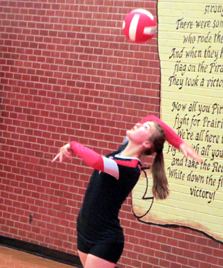 The Prairie Lady Pirates continued their early season struggles as they fell to 0-4 on the season with a pair of league losses last week. On Tuesday, Sept. 10, they lost their home opener to C.V. in 5 games, 22-25, 25-19, 25-20, 17-25, 11-15, and on Thursday, Sept. 12 they traveled to Troy where they lost in 3 games, 9-25, 6-25, 14-25. C.V. came right back with 5 straight points to set the tone for the match. A bricked serve ended their run and Halle Klapprich served Prairie to an 8-5 lead. She had 2 aces and Uhlenkott added a kill.